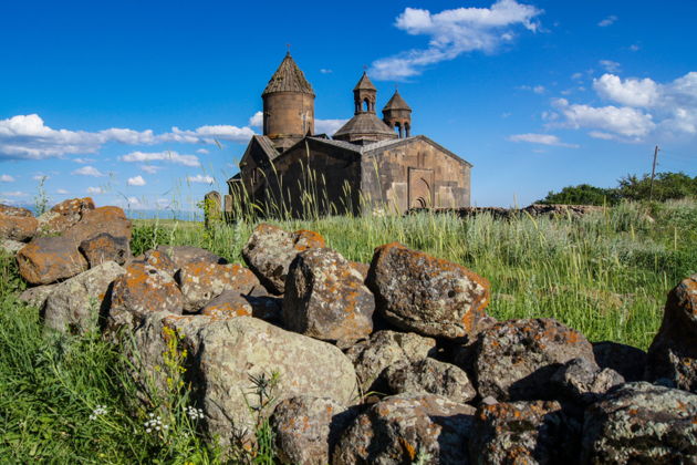 По дороге вас ждет остановка у монастыря Сагмосаванк. Он будто вырастает из скалы над бурным ущельем реки Касах. Виды отсюда - те самые открыточные кадры, ради которых стоит приехать. А дальше - Аллея армянского алфавита. Тридцать девять каменных букв, выстроившихся в ряд как дань уважения гению Месропа Маштоца. Рядом - монументальный 33-метровый крест, сложенный из сотен маленьких. Это не просто памятники, а символы идентичности целого народа.