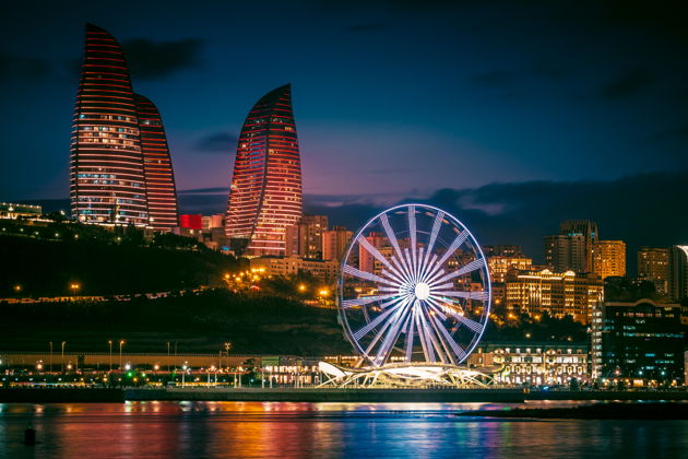 - Пламенные башни, Девичья башня, Бакинское колесо обозрения, Кристал Холл, Площадь Государственного флага и другие)