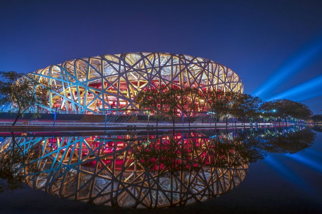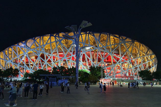 Первая остановка - олимпийские объекты 2008 года. Без дневных толп и шума они выглядят совершенно иначе. Подсветка превращает стадион «Птичье гнездо» и аквацентр «Водяной куб» в фантастические инсталляции. Фотографии получаются просто сюрреалистичными - никаких случайных людей в кадре, только вы и архитектурная магия.