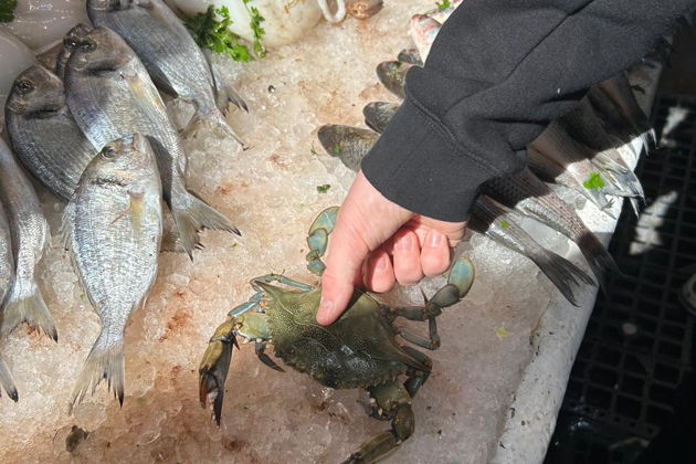 - Обед на рыбном рынке.