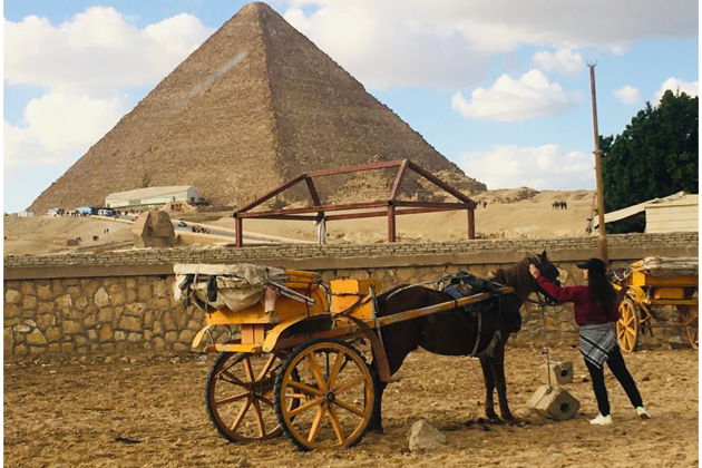 Воду, головной убор и солнцезащитный крем — в Каире солнце палит нещадно, а гидратация ключевая.