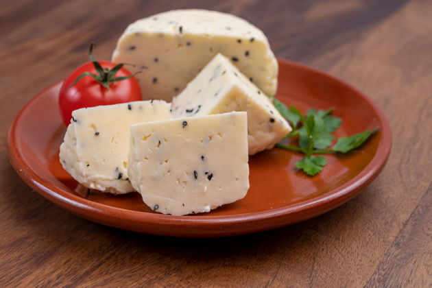 - Закуски (паштет, колбаса, вареники, солёные огурцы и овечий сыр)