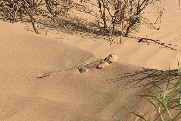 На вершине вас ждет момент полного единения. Можно просто сидеть на краю бархана, чувствуя, как песок еще хранит ночную прохладу. Или сделать «песчаного ангела» - почему бы и нет? Для самых азартных у нас есть сачок для ловли ящериц - поймали, сфотографировали на память и отпустили обратно в их песчаный дом. А если ветер позволит, запустим в небо воздушного змей.