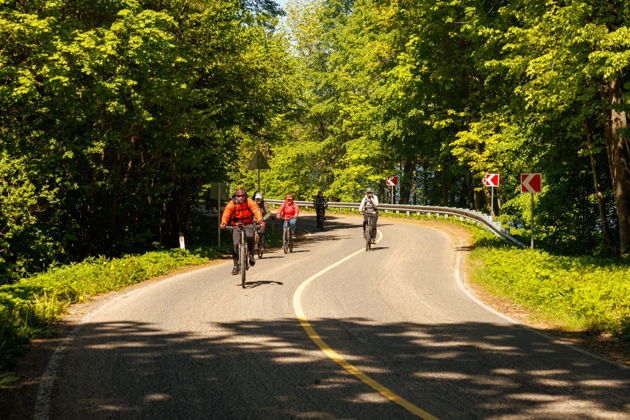 А теперь про комфорт. Все продумано до мелочей. Ваша база - уютный Friday Center. Сюда вы заселяетесь с 14:00, отсюда же стартуют все маршруты. Не нужно никуда ехать на встречу. Утром - сытный завтрак в кафе центра, вечером - вкусный ужин. А в середине дня - пикник с видом на море прямо на маршруте. Велосипед и все снаряжение уже ждут вас. Легкие Riverside 900 с анатомическими ручками и мягкими сиденьями сделают поездку удовольствием даже для новичка.