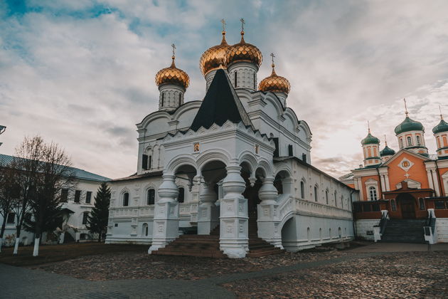 Упор в маршруте на Ипатьевский монастырь. Кульминация не вымученная, а по логике вещей - если уж династия Романовых началась именно тут, это не повод для пафоса, а причина задержаться у глухой кирпичной стены. Вы смотрите на архитектуру иную, чем привыкли в центрах, тяжелую, значительную, сосредоточенную, и поймете, почему она буквально стала родным местом для царственных особ.