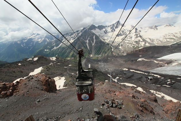 Далее - поселок Азау, самая высокая обитаемая точка. Зимой это белое царство с темно-зелеными елями, летом - цветущий альпийский луг. Отсюда стартует канатная дорога на Эльбрус. Подъем до станции «Гара-Баши» (3780 м) - это три часа наедине с горами. Заснеженные перевалы, головокружительные виды и возможность подняться еще выше - на снегоходе до Приюта.