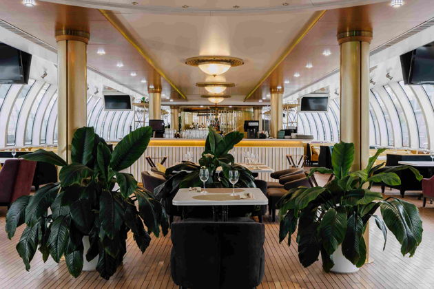 Представьте: проплывают Кремль, парк Зарядье, храм Христа Спасителя, сталинские высотки и парящий мост. Два с половиной часа - и вы увидите Москву с ее открыточной стороны, без пробок и толп. А внутри - все для полного погружения в атмосферу. Мягкие диванные группы, авторская кухня от шефа, бар с достойным арсеналом. И музыка. По вечерам с четверга по субботу здесь играют живые музыканты, превращая круиз в настоящее шоу на воде. В остальные дни - атмосферные диджей-сеты.