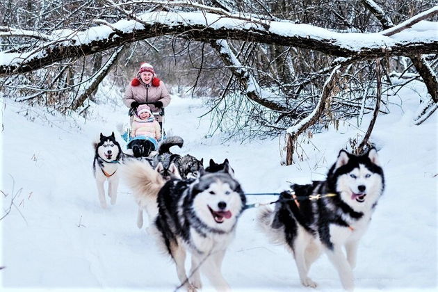 - Катание на собачьей упряжке по заповедному лесу (2 км.) — 1600 рублей/чел.