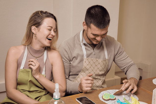 А дальше - творчество. Два вырезных пряника, глазурь-краска и ваша фантазия. Распишите их так, как подскажет душа. Эти авторские шедевры потом станут главным угощением для домашнего чаепития. Кстати, о дегустации! Пока ваши творения томятся в печи, вас ждет проба наших авторских пряников и согревающего пряного чая. Вкусно? Еще бы!