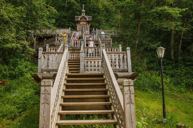 Финальный аккорд - Гремячий ключ. Водопад, по преданию, забивший по молитве самого Сергия. Свежий воздух, звон струй, возможность набрать живой воды. Это сильное, заряжающее место.