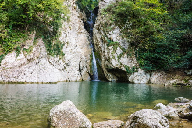 Потом - резкая смена декораций. Мы углубимся в природу. Чайные плантации с их бархатными террасами и терпким ароматом. А потом - водопады. Змейковские, где вода срывается с уступов, и Агурские в их живописном ущелье, где шум падающей воды заглушает все мысли. Рядом - поляна Высоцкого, тихое место памяти у подножия реки Агура.