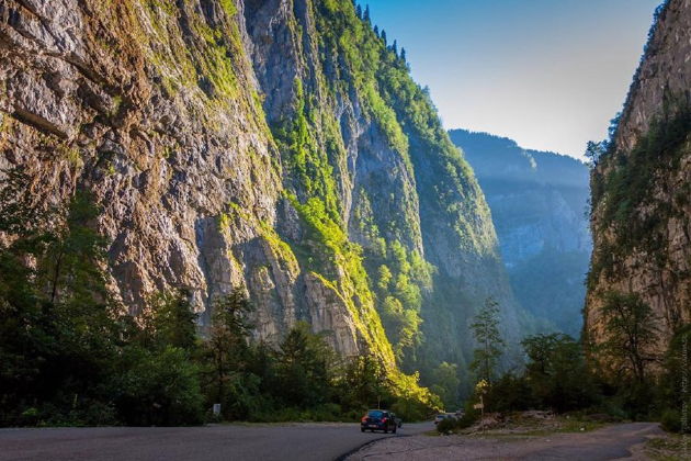 Стартуем с Гагры. Колоннада, Приморский парк, первый глоток морского воздуха. А дальше - к легендарному Голубому озеру. Цвет воды там - не фотошоп, поверьте. Это природная магия, которую местные считают одним из главных чудес. Потом дорога виляет вглубь, в Юпшарский каньон. Скалы сходятся так близко, что небо превращается в узкую ленту. Самшиты-великаны шепчут истории веков.