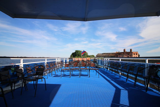На борту вас ждет комфорт и погружение. Аудиогид на русском (для иностранных гостей - на английском) проведет живой и увлекательный рассказ. Работает бар с напитками и закусками - можно выпить кофе, любуясь видами. А выйдя в просторы Финского залива, вы ощутите тот самый глоток свежести, особенно желанный в летний зной. Удобные сиденья, чистота - все для вашего удовольствия.