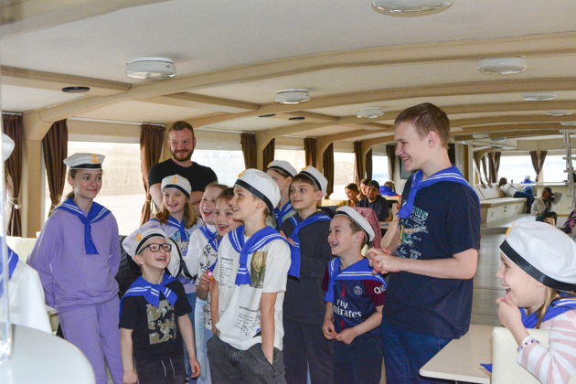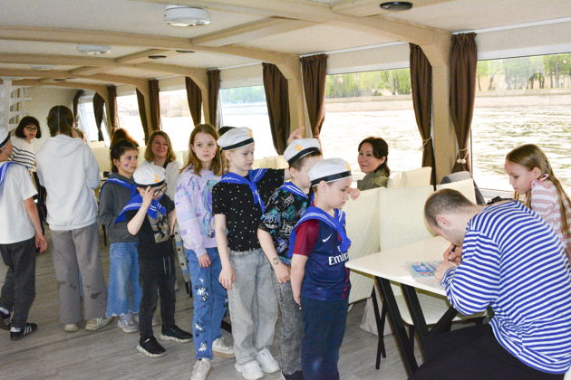 Они узнают, как корабли «разговаривают» флагами, зачем моряку уметь вязать узлы и почему Нева такая глубокая и быстрая. Погрузятся в легенды флота, разберутся с компасом и раскроют секрет полосатой тельняшки. А еще - настоящий секретный конкурс! Самый внимательный юнга, отыскавший на борту спрятанную фигурку корабельного кота, получит значок «Суперморяк».