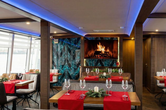 Вот он, ваш транспорт - трехпалубный теплоход-ледокол «Шустрый Бобер». Уютное кафе на борту, аромат свежей выпечки из собственной кондитерской и, конечно, фирменный глинтвейн, который мы вам приготовили. А в наушниках аудиогида - не просто сухие факты, а настоящие истории. О зимних традициях города, о том, как Петербург встречал Новый год в разные эпохи, о легендах, что живут среди гранита и льда.
