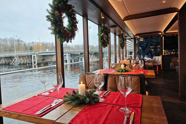 И пока звучат знакомые праздничные мелодии, за бортом поплывет парадная иллюминация. Дворцовый мост, Троицкий, Литейный - все они в новогоднем уборе. Крейсер «Аврора» и шпиль Петропавловской крепости. А на горизонте - символы нового времени: сверкающая игла Лахта Центра и купол Газпром Арены. Контраст, который заставляет сердце биться чаще.