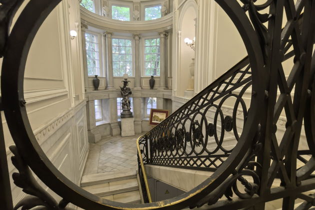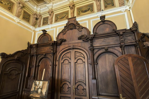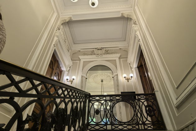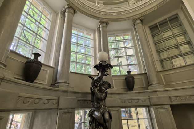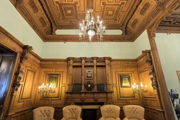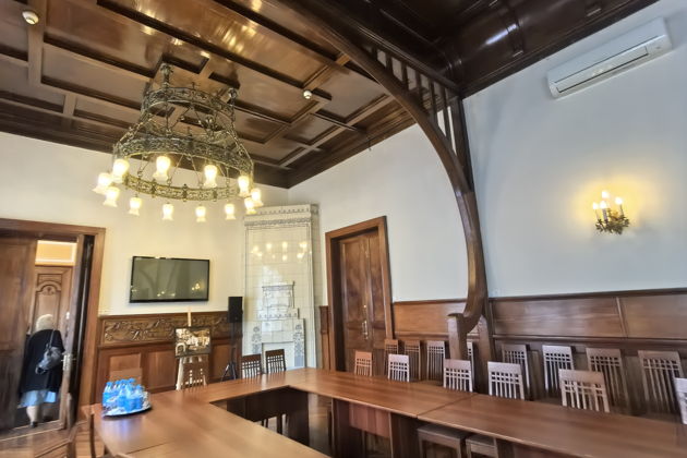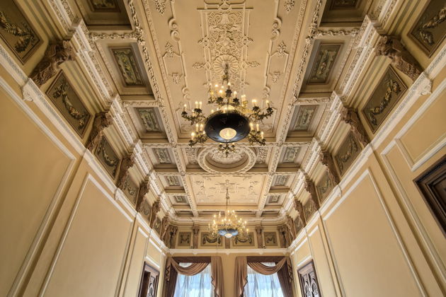 Вас ждет путешествие по анфиладе парадных залов. Готическая гостиная с ее таинственной атмосферой. Уютный Дубовый кабинет. Театральный зал, где когда-то звучали аплодисменты. Вы рассмотрите в деталях все: от изящной лепнины и росписей на потолках до массивных резных дверей и каминов XIX века. Внутри особняк поражает размахом - он гораздо больше, чем кажется с улицы.