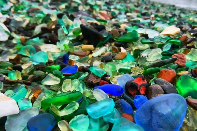 И вот резкий поворот - к волшебству. Бухта Стеклянная. Здесь под ногами не песок, а россыпь самоцветов. Миллионы стеклышек, отшлифованных морем за столетия. Просто невероятно.