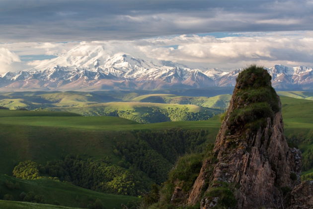Сначала - перевал Гумбаши. Дорога вьется между хребтов, а в ясный день на горизонте маячит Эльбрус. Потом - необычная пещера-туннель в песчанике. Ее стены, изъеденные ветром, напоминают гигантский сыр. Да, именно Сырные пещеры. Фото получаются сюрреалистичные.