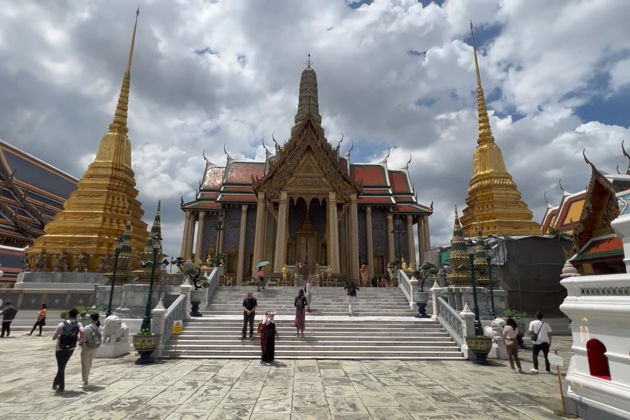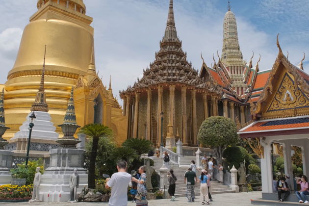 Леонид, ваш гид, проведет вас по спрессованной истории Сиама. Начнем с жесткого контраста - фотостоп у ажурного Железного дворца на фоне древней Золотой горы. Потом - погружение в сердце тайской монархии. Большой Королевский дворец, где камень дышит властью с XVIII века. И его сокровище - Храм Изумрудного Будды. Маленькая статуя, огромная сила, оберегающая целую нацию. Вот она, священная тишина.