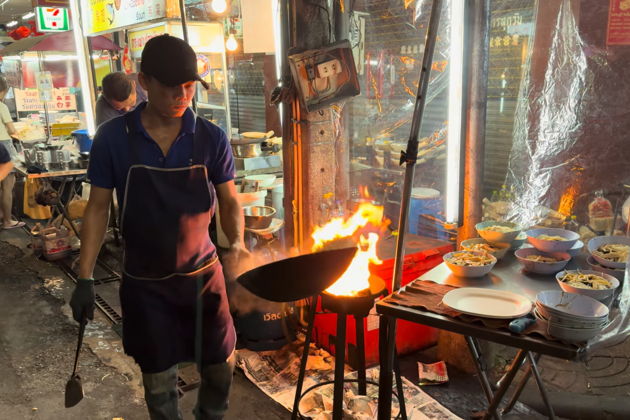 А дальше - движение. Переправа через Чао Прайю на пароме к храму Ват Арун. Его пагода, усыпанная фарфором, в лучах солнца - просто огонь. Потом резкая смена декораций: садимся на воздушное метро BTS. Проносимся над городом, ловим в окне причудливый храм-корабль Ват Ян Нава, футуристические мосты, стеклянные гиганты. Это уже другой Бангкок. Живой, пульсирующий.
