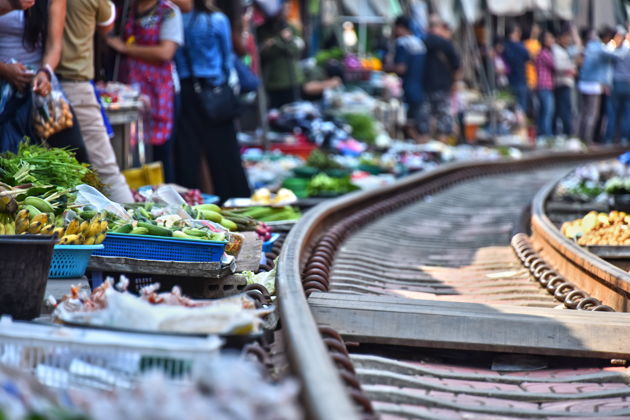 А потом - смена декораций. Рынок Маклионг. Он работает прямо на железнодорожных путях. Несколько раз в день раздается гудок. И начинается магия: продавцы за считанные секунды убирают тенты и лотки, освобождая путь. Поезд медленно, почти церемониально, проезжает в сантиметрах от прилавков. И как только он скрывается - все возвращается на свои места. Это не аттракцион, это их обычный день. Зрелище, от которого захватывает дух.