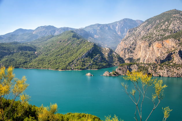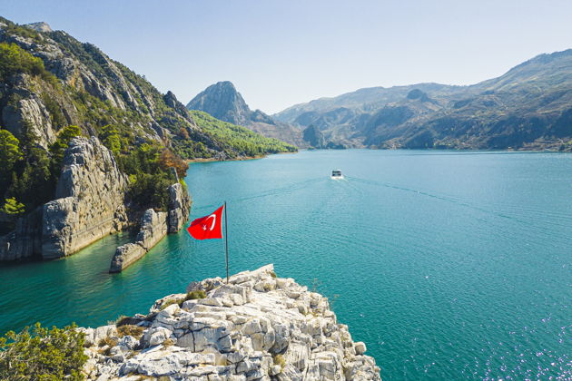 Представьте себе малахитовую гладь, окруженную скалами, где горный воздух пахнет миндалем и цитрусами. Это Зеленый Каньон - не просто чудо природы, а грандиозный инженерный проект. Искусственное озеро Оймапинар, созданное в 80-х на месте древней реки Манавгат. Глубина - до ста метров, вода круглый год прохладная, +11…12°С. Сливаются 27 горных источников. Фантастика.