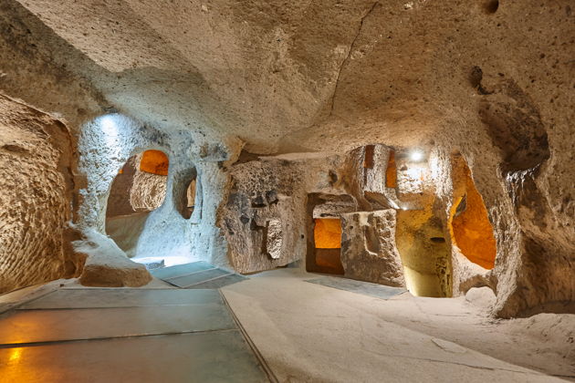Но главный аттракцион - внизу. Подземный город, целый лабиринт жизни, вырубленный в толще туфа. Узкие коридоры, скрытые хранилища, вентиляционные шахты - вы физически ощутите, как здесь укрывались целые поселения. После такого дня размещение в отеле с ужином «шведский стол» будет как нельзя кстати.