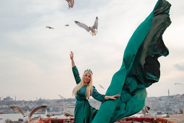 Но это еще не все. Хотите добавить волшебства? За отдельную плату можно арендовать потрясающее платье - пышное, со шлейфом или в османском стиле. Есть и мужские наряды. Или взлететь на крылатых качелях за 20 евро. Практично: лучший свет - утром к 8:00 или после 16:00, но вечером будьте готовы к возможной очереди на вход. Само посещение крыши - это 30 евро с человека (детям до 7 лет бесплатно). Группа до трех человек, так что атмосфера будет камерной, а внимание - только ваше. Просто прогулка? Нет. Это ваша личная сказка над Стамбулом, запечатленная в кадре.