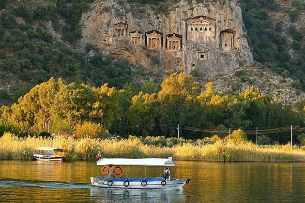 Вы отправитесь на комфортабельном автобусе, а дальше - лодка станет вашим проводником. Первая остановка - знаменитые природные купальни. Здесь вас ждут теплые сероводородные бассейны и лечебные грязи, после которых кожа будто заново рождается. Совет на будущее - сменная одежда тут не будет лишней. А потом - тихий плеск воды под бортом. Лодочная прогулка по извилистой реке Дальян открывает главную достопримечательность: ликийские гробницы, высеченные прямо в отвесных скалах много веков назад. История, застывшая в камне.