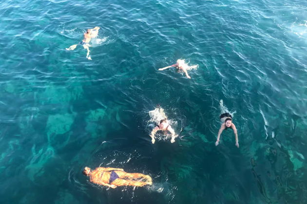Через час пути - первая остановка. Прыгайте в воду цвета аквамарина, почувствуйте прохладу и невероятную прозрачность. А пока вы наслаждаетесь купанием, на борту для вас готовят обед. Представьте: вкусная еда и бескрайние морские просторы вокруг.
