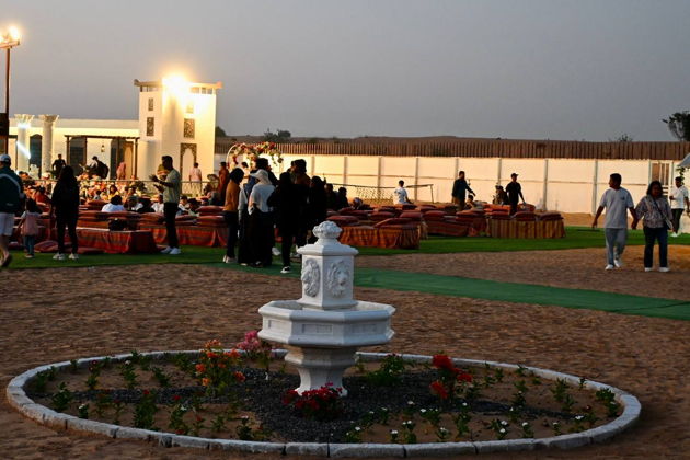 Ужин по системе шведский стол: от закусок вроде пакора до барбекю и салатов. Напитки - входят. А вот за алкоголь или, скажем, квадроциклы - доплата отдельно. Шоу-блок - танцы, фаер и завораживающая танура. Хотя, судя по отзывам, фаер-шоу бьет все рекорды по восторгу. Программа длится около пяти часов, группа - только ваша компания до шести человек.