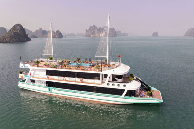 Это премиальный дневной тур в залив Халонг на новейшем лайнере Aurora Cruise 5*. Идеальный выбор для тех, кто хочет совместить осмотр чудес ЮНЕСКО с комфортом пятизвездочного отеля.
