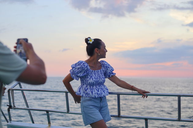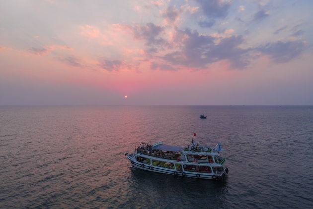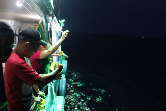 В порту вас встретит небольшое судно. Группа до пяти человек - это почти личная яхта. И вот вы уже на воде. Закат над Фукуоком - это не просто красиво. Это спектакль, где небо меняет цвета от золота до глубокого индиго. Пока вы ловите этот момент, экипаж готовит снасти. Спасательные жилеты - дело обязательное, инструктаж проведем. Безопасность прежде всего.