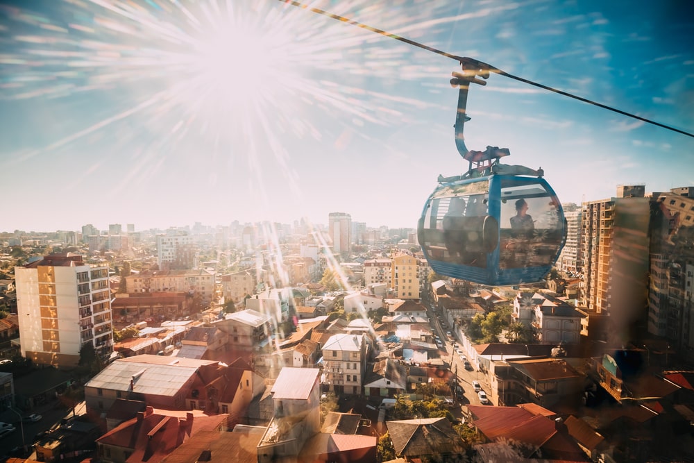 Гора Анурия высотой 250 метров над морем встречает пассажиров канатной дороги "Арго" в Батуми. С 2013 года девять кабин по шесть человек за 8–15 минут преодолевают 2,5 км - одну из самых длинных трасс в Грузии. Панорамное остекление открывает виды на Черное море, порт, набережную и городские горы. Наверху расположены рестораны, кафе, магазины сувениров, смотровые площадки, террасы и церковь. Нижняя станция на ул. Гогебашвили напротив Goodwill доступна пешком из центра или на транспорте. Ежедневно с 11:00 до полуночи билеты туда-обратно стоят 15–33 лари взрослым, 5–7 детям. Вечером сияет ночной Батуми, в сильную погоду движение останавливают.