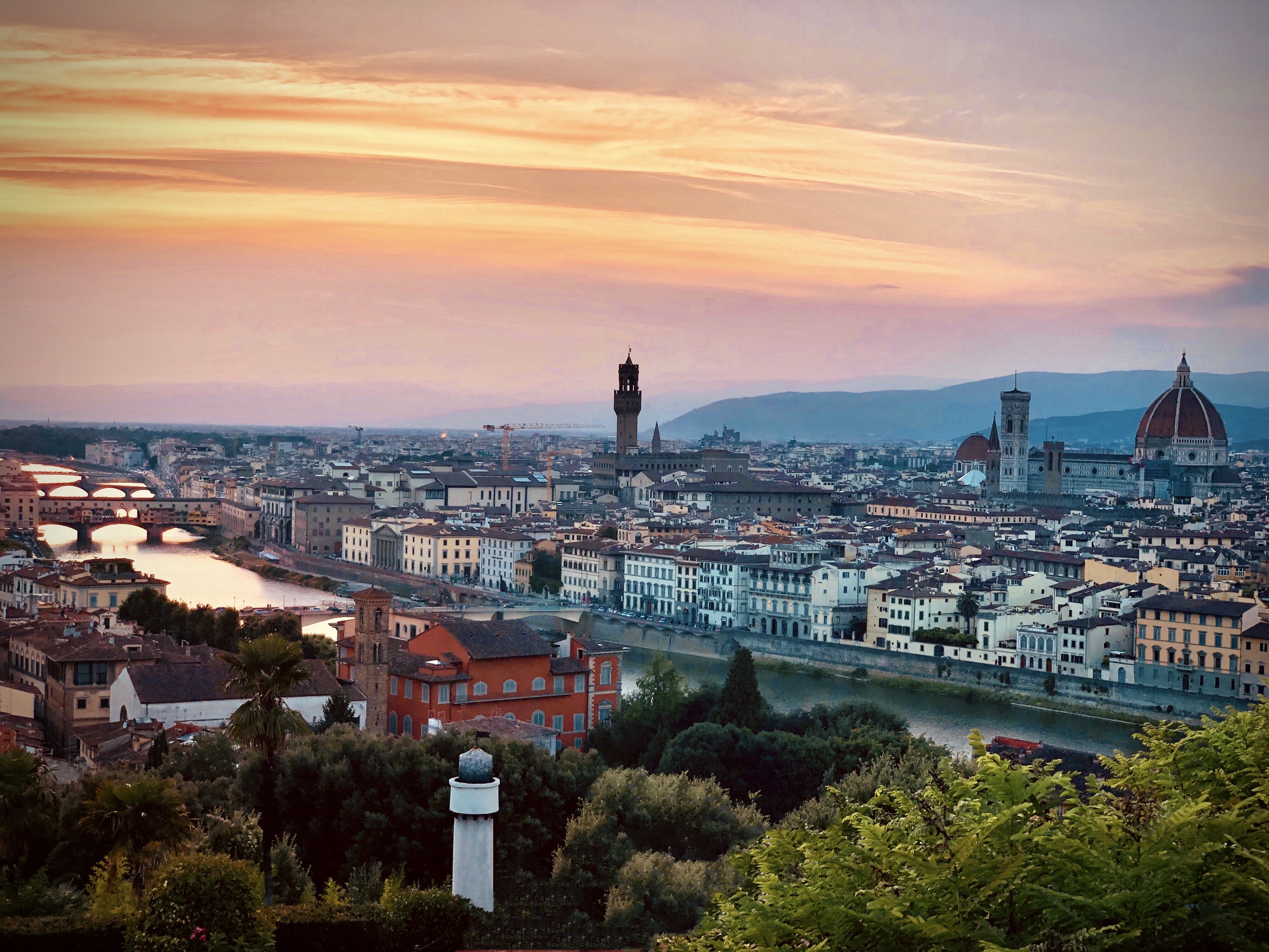 С восточного берега реки Арно открывается знаменитая панорама исторического центра Флоренции. Этот вид стал главной особенностью Пьяццале Микеланджело, обширной смотровой площадки, созданной в 1869 году по проекту архитектора Джузеппе Поджи. Площадь посвящена великому мастеру Возрождения, чьи копии известных скульптур, включая Давида, установлены в ее центре. Сегодня это популярная точка притяжения для туристов, желающих увидеть все ключевые памятники города, от купола Санта-Мария-дель-Фьоре до моста Понте-Веккьо, с одной обзорной точки.