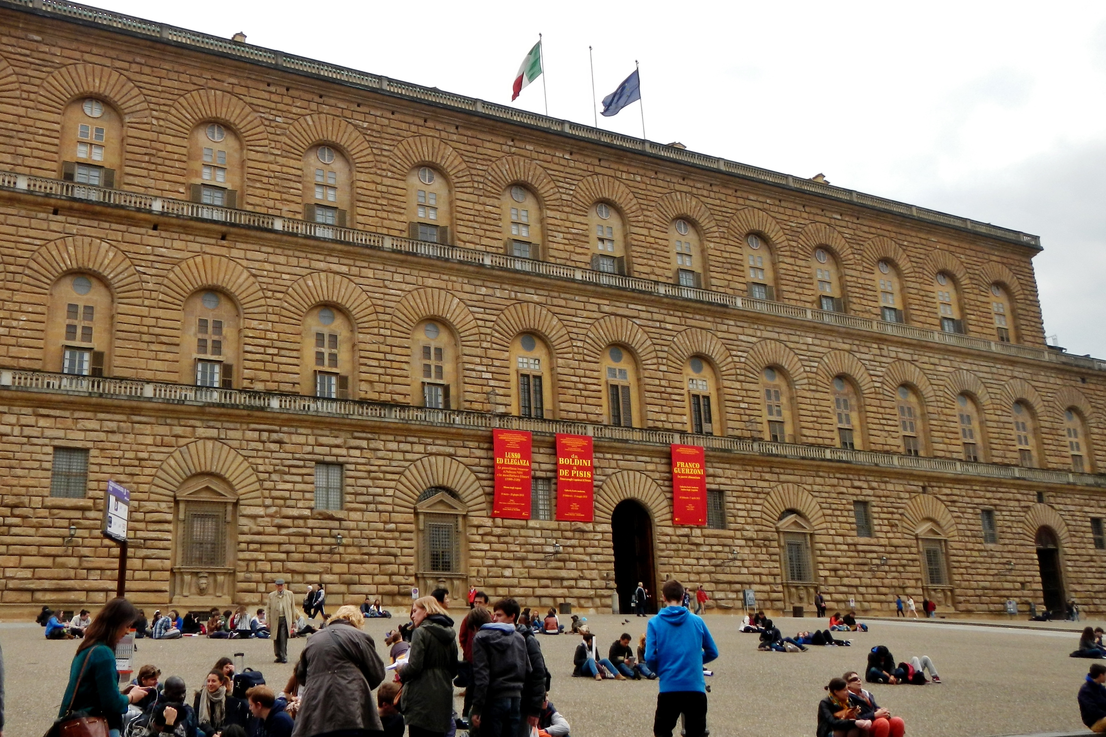 Во Флоренции на левом берегу реки Арно расположен крупнейший городской дворец - Палаццо Питти. Этот выдающийся памятник архитектуры эпохи кватроченто, или Раннего Возрождения, возвышается на одноименной площади. Сооружение знаменито своим «длинным коридором», который соединяет его через реку со старым Палаццо Веккьо. С юга к дворцовому комплексу примыкают знаменитые Сады Боболи - образец садово-паркового искусства маньеризма. Сегодня палаццо является масштабным музейным центром, где размещаются Палатинская галерея, Галерея современного искусства, а также музеи серебра, фарфора, карет и крупнейшая в Италии Галерея костюма.