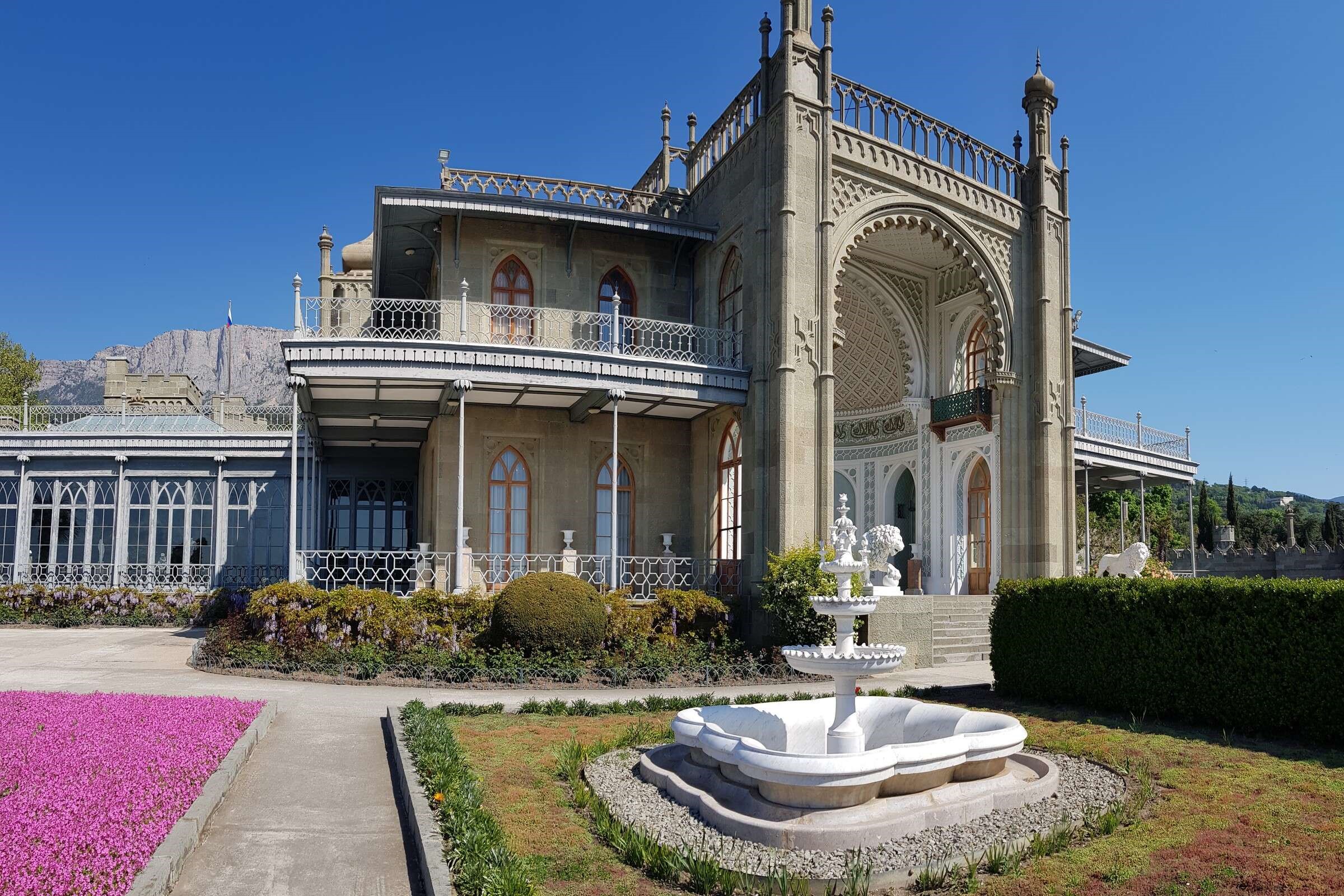 В Кореизе на Южном берегу Крыма расположен Юсуповский дворец. Это архитектурный памятник эклектики, созданный в начале XX века известным ялтинским зодчим Николаем Красновым. Заказчиком выступил князь Феликс Юсупов (граф Сумароков-Эльстон), представитель одной из самых знатных и богатых фамилий Российской империи. Архитектор мастерски соединил в облике здания элементы разных стилей, включая неороманский. Сегодня бывшая княжеская резиденция функционирует как музейно-гостиничный комплекс, доступный для посещения.