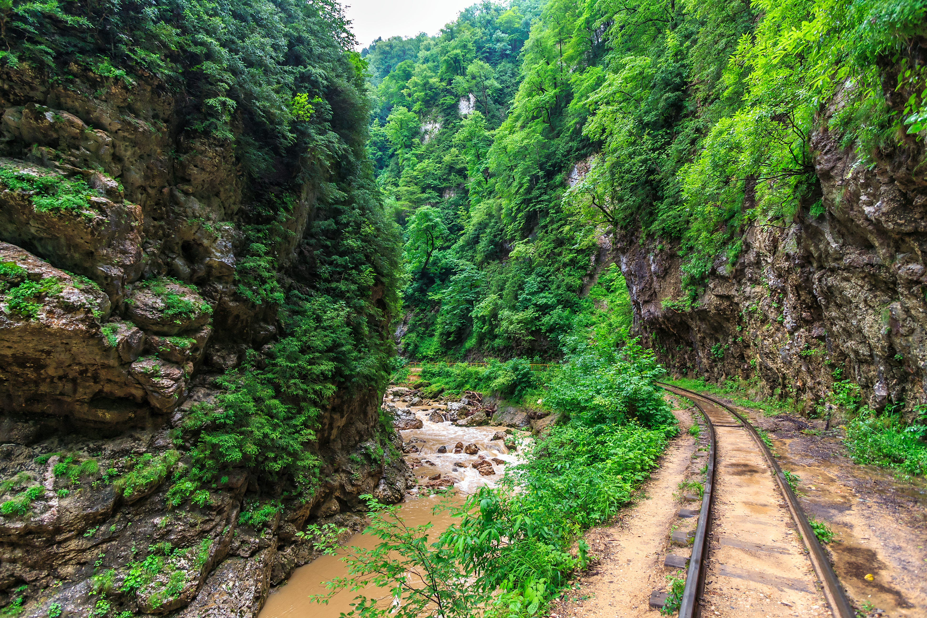 Особенно впечатляет узкоколейка - этакая горная змейка, вьющаяся между разноцветных скал. Поездка по ней - настоящее приключение! С одной стороны - отвесные стены, с другой - обрыв, а внизу бурлит Курджипс. Кстати, местные гиды рассказывают, что название реки переводится как «грузинская вода», но сами кубанцы ласково зовут ее «горлянкой» за крутой нрав.