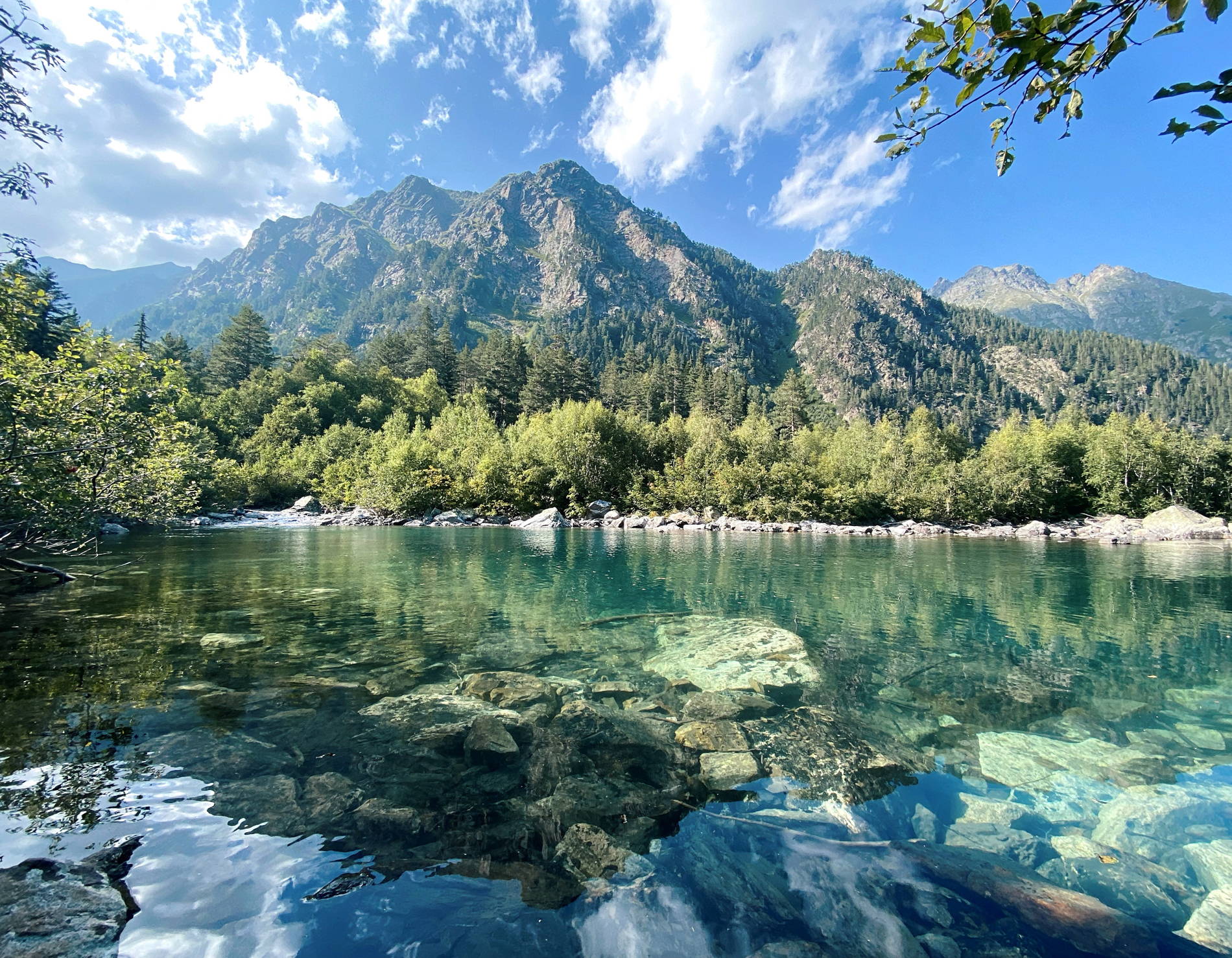Одна из самых чистых рек России и Европы, Уллу-Муруджу, течет в Тебердинском заповеднике Карачаево-Черкесии, недалеко от Домбая. Ледниковое происхождение обеспечивает кристальную воду: истоки сливаются от массива Уллу-Муруджу, Озерного и Кышкаджерского хребтов, включая озеро Павлиний Глаз, а через 14 км река впадает в Теберду. Бурное течение с порогами, водопадами окружает хвойно-буковые леса, альпийские луга, ущелья Хаджибея и Бадука. Доехать на авто или маршрутке из Теберды по трассе А-155 до 105-го км (8 км южнее курорта): там парковка, смотровая площадка, зоны отдыха, рынок с медом, вином, сувенирами. Пешком 50 м до тропы вдоль русла - 2–3 часа до Муруджинской Иголы, дальше к озерам Черному и Голубому с ночевкой в березовой роще (крутой подъем). Гиды водят джип-туры, комби-экскурсии по Домбаю (Гумбаши, Сырные пещеры) от 3800 руб./чел. Пикники, фото, отдых у воды или восхождения манят в дикую природу с реликтовыми лесами и панорамами.