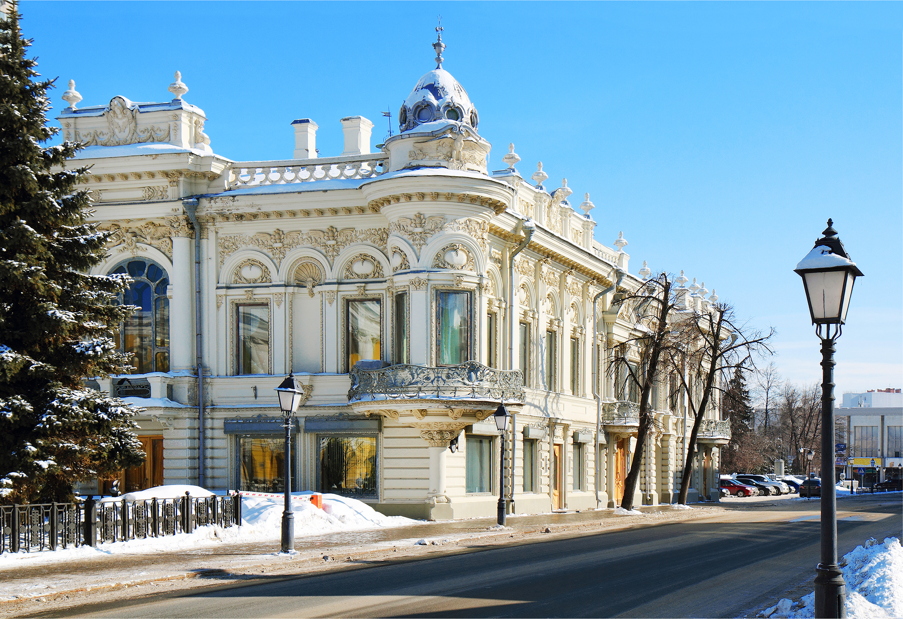 Особняк в центре Казани был кардинально перестроен в начале XX века, став образцом эклектики с причудливым смешением архитектурных стилей. Здание, известное как дом купчихи Зинаиды Ушковой, признано объектом культурного наследия федерального значения. На протяжении столетия, с 1919 по 2020 год, в его стенах размещалась главная библиотека Татарстана. Сегодня исторический памятник сохраняет свой статус одной из ключевых городских достопримечательностей.