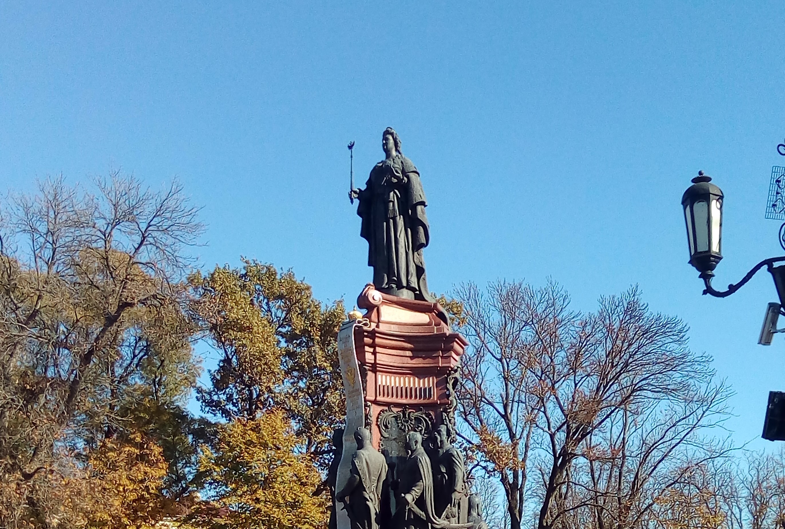 4 экскурсии от 3150 ₽Центральная улица Краснодара, Красная, протянулась между Постовой и Офицерской улицами. Она является административным и общественным ядром города. Здесь расположены здания городской и краевой администраций, а также Законодательного собрания, от которого начинается нумерация домов. Вдоль магистрали сосредоточены театры, музеи, кинотеатры и множество магазинов, что делает ее главной артерией городской жизни. Историческим ориентиром служит и памятник императрице Екатерине II.