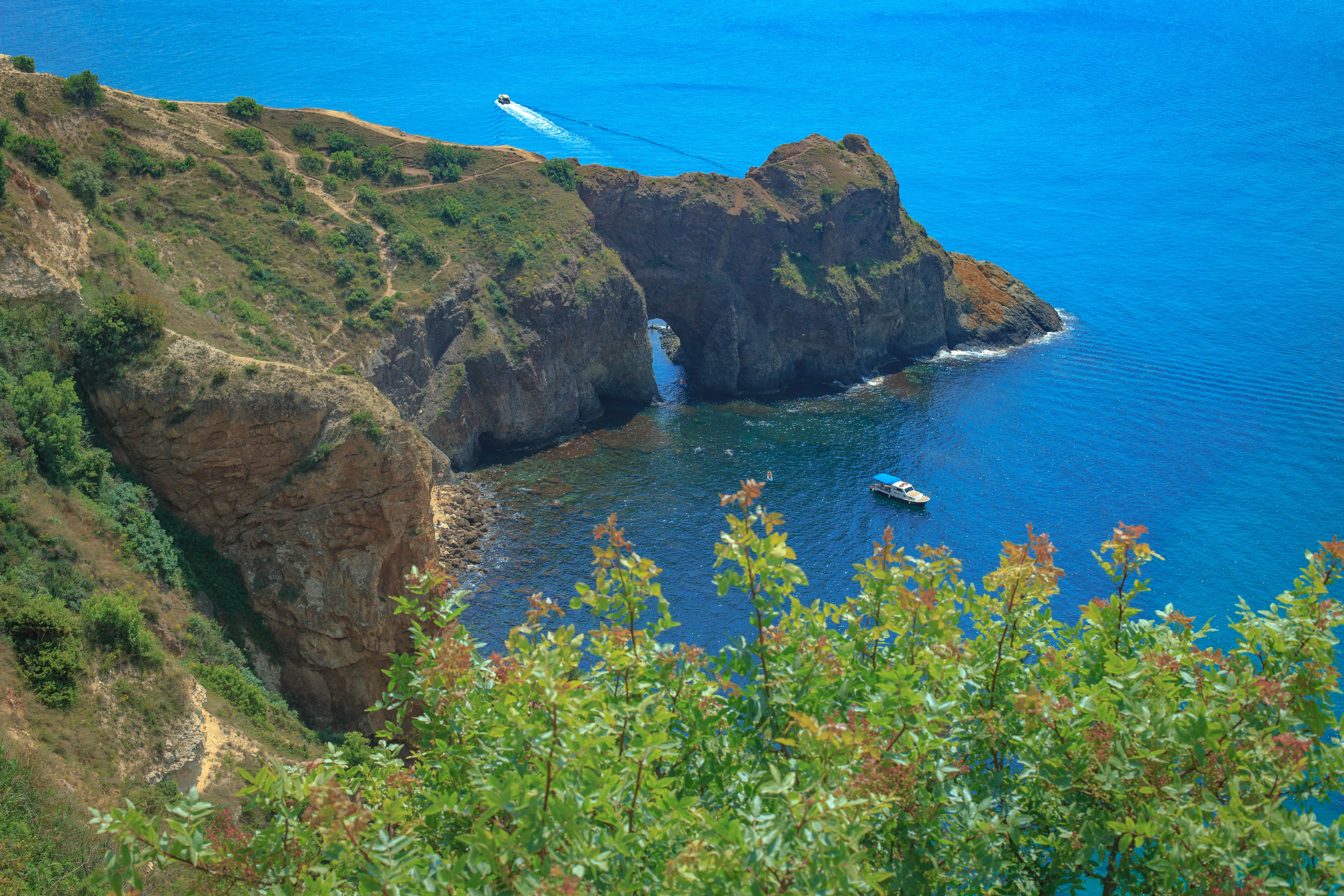 Западный форпост полуострова удивительным образом сохранил первозданность - никаких толп туристов, только ветер в ушах да крики чаек над головой. Природа здесь будто сошла с полотен Айвазовского: бирюзовые воды, выбеленные солнцем скалы, резко обрывающиеся в море.