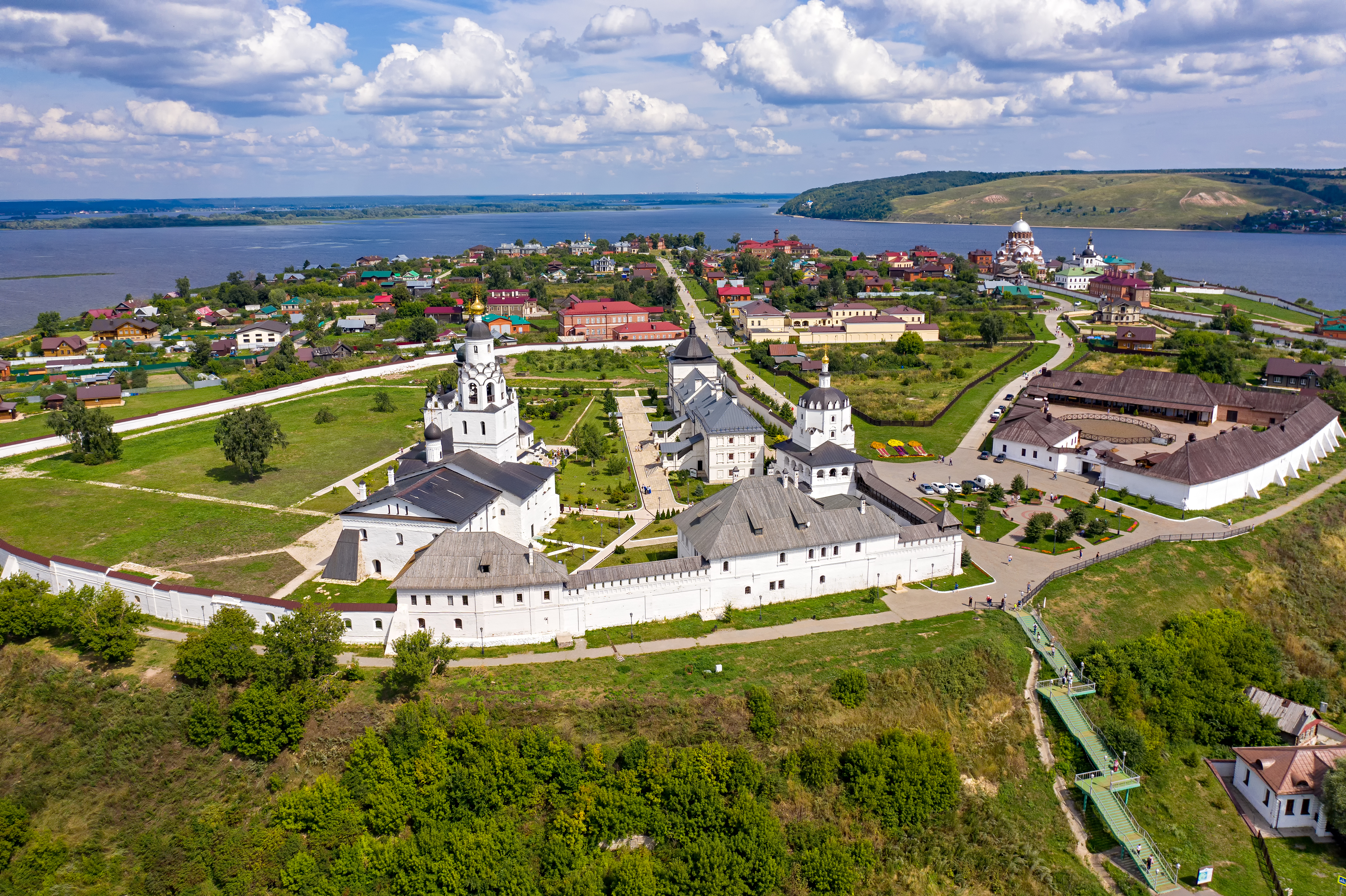 На острове-граде Свияжск расположен действующий мужской монастырь, признанный объектом Всемирного наследия. Богородице-Успенская обитель, основанная в XVI веке, считается колыбелью православия всего Казанского края и Поволжья. Архитектурный ансамбль включает уникальные памятники псковско-новгородской школы, такие как Успенский собор с фресками эпохи Ивана Грозного. Сегодня монастырь относится к Казанской епархии Русской православной церкви и продолжает свою духовную жизнь, оставаясь важнейшим историческим и культурным центром региона.