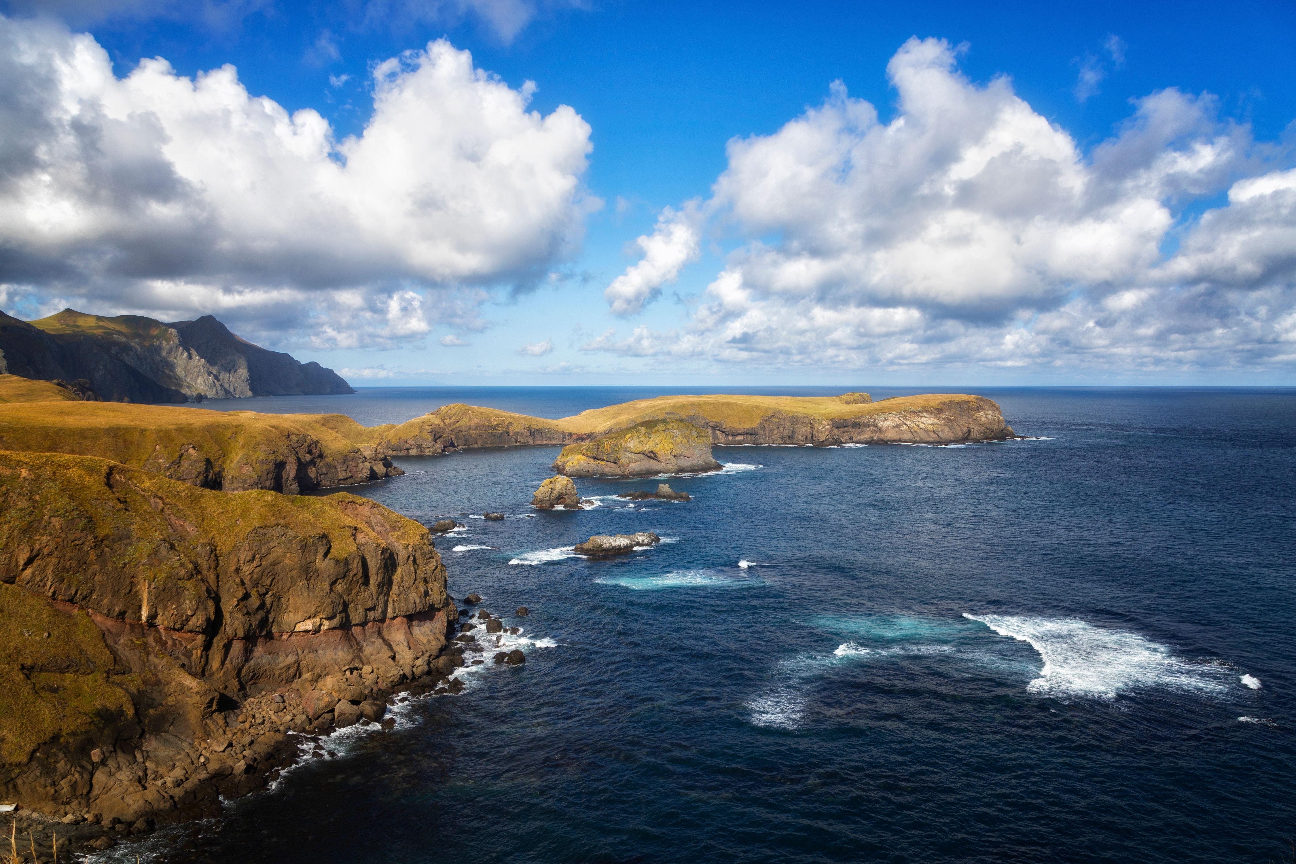 На юго-востоке Сахалина, у восточного побережья Тонино-Анивского полуострова, расположен памятник природы "Мыс Великан". Эта охраняемая территория демонстрирует классический пример абразионного побережья, то есть берега, сформированного разрушительной силой моря. Ландшафт включает живописные бенчи - волноприбойные террасы и причудливые скалы-останцы, известные как кекуры. На морской террасе сохранились елово-пихтовые леса, а на выступающих скалах устраивают залежки тюлени и гнездятся морские птицы.