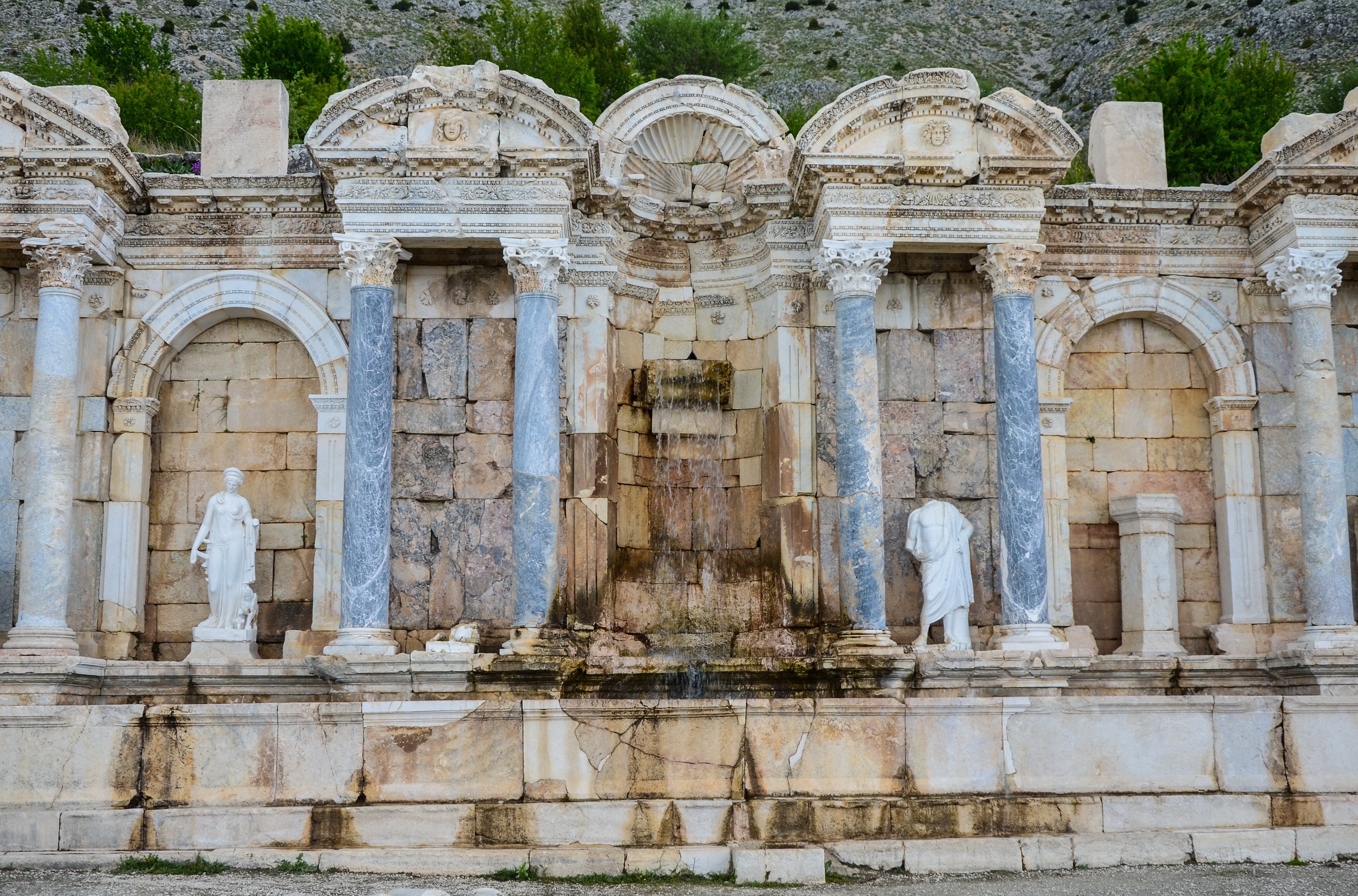 В черте турецкой Антальи находится каскад водопадов, известный как Дюденский. Его формирует река Дюден, одна из водных артерий юга Анатолии. Верхний каскад, окруженный парковой зоной, обрушивается с высоты около 20 метров. Основной поток реки уходит под землю, чтобы снова вырваться на поверхность уже в виде Нижнего Дюдена, низвергающегося прямо со скал в Средиземное море. Это делает его одним из немногих водопадов в мире, падающих непосредственно в морские воды.