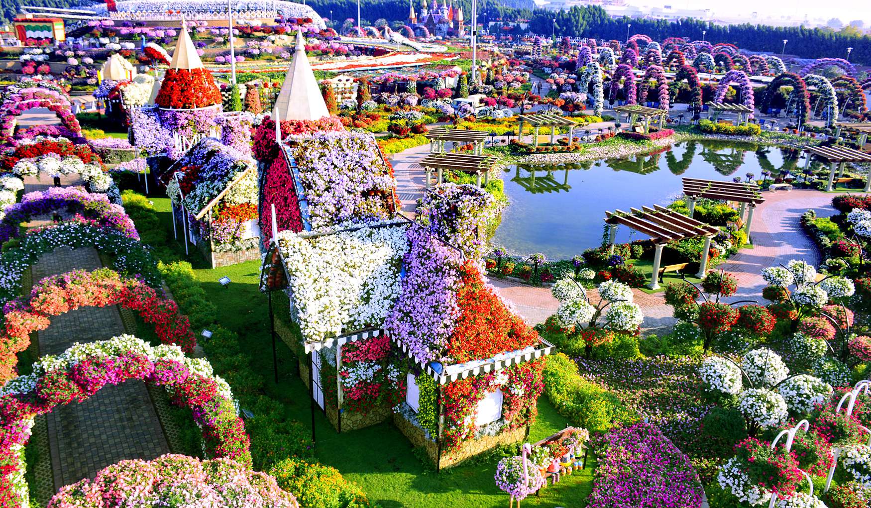 Представь себе - больше 45 миллионов (!) цветов всех возможных оттенков. И ведь это не просто хаотичные посадки, а продуманные композиции, где каждый лепесток на своем месте. Гуляя здесь, буквально теряешь счет времени - то застынешь перед фонтаном, полностью собранным из живых цветов, то обнаружишь неожиданную живую скульптуру за поворотом.