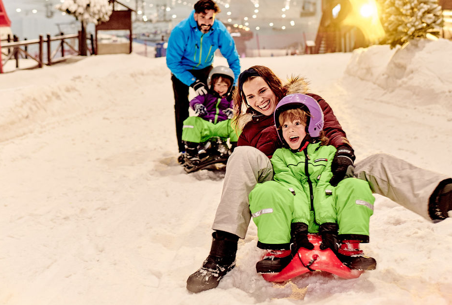В торговом центре Mall of the Emirates находится уникальный для региона объект - крытый горнолыжный комплекс Ski Dubai. Это первый на Ближнем Востоке и один из крупнейших в мире парков такого типа, открытый в ноябре 2005 года. Его площадь составляет 22,5 тысячи квадратных метров, а высота достигает 85 метров. Пять склонов разной сложности, включая трассу для сноубордистов, обслуживаются подъемниками. Температура здесь круглый год поддерживается на уровне -1...-6°C, а инфраструктура дополнена санными трассами и ледяной пещерой. Комплекс рассчитан на 1500 посетителей, для которых предоставляется необходимая экипировка.